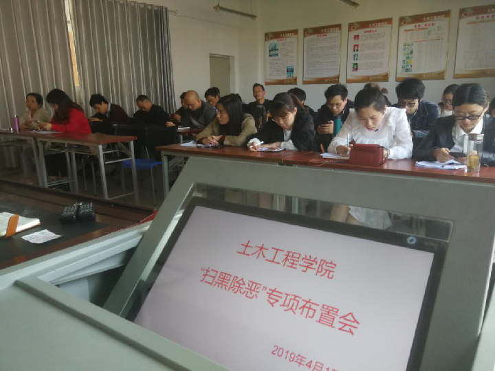 会议传达了万晓明书记在学校的扫黑除恶专项工作布置会上要求。万书记要求全校党员领导干部和教师要进一步提高政治站位,强化工作措施,补齐短板,强化线索摸排,强化安全管控,特别是意识形态方面管控,做好矛盾纠纷处理。王鳌杰院长根据会议精神要求各班主任辅导员教师要在思想上要高度重视,要紧扣扫黑除恶专项斗争职责任务落实,对标省教育厅和学校扫黑除恶的要求开展自查自纠,每位老师都要认真学习扫黑除恶应知应会手册,深入重点查摆本班级是否存在校园贷的问题,坚决杜绝此类情况发生。