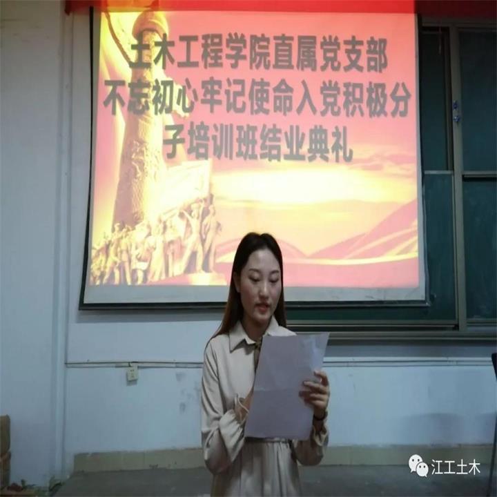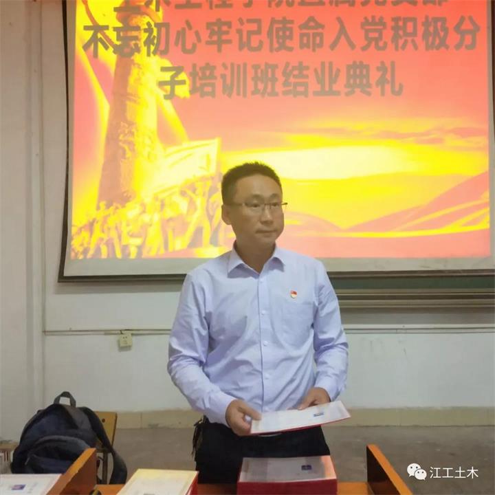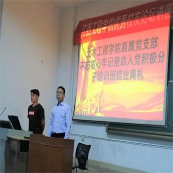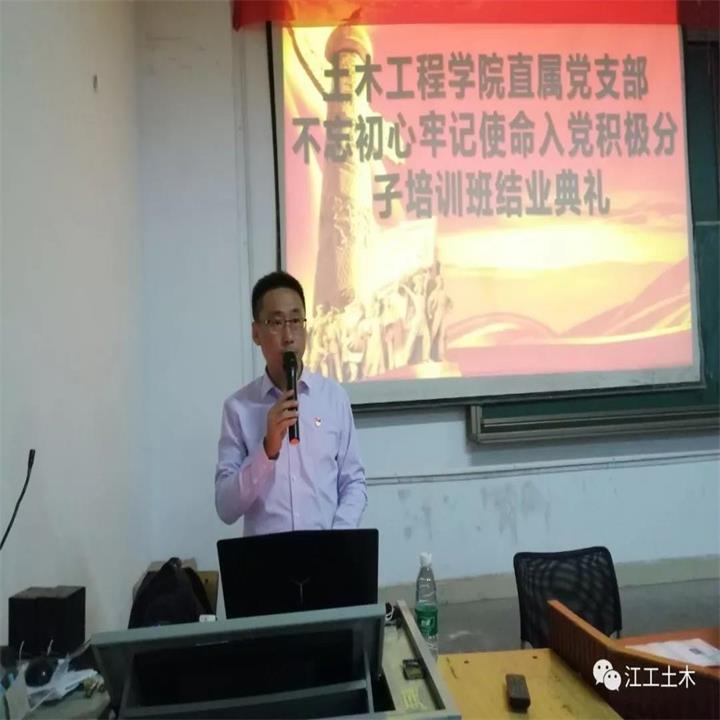 党支部副书记刘永东在结业讲话中说到,举办入党积极分子培训班是入党的必经环节,也是建设高素质党员队伍的内在需要.通过这历时一年的阶段培训学习,今天终于顺利结业了。虽然这次培训结束了,但是全体同学还要继续加强学习,自觉按照党员的基本条件,按照《党章》要求,不断努力、创造条件,争取早日加入党组织”。他表示要全体要加强自身素质的提高,自觉接受党组织的培养、教育和考察,并且继续保持入党积极分子的先进性。“未入党的门,先做党的人”是他对同学们积极性的希望和要求。并表示党组织会继续对大家跟踪培训、教育和考察,期许大家注重个人能力提升,牢固树立终生学习的观念,要以“不忘初心、牢记使命”主题教育为契机,加强政治理论学习,端正入党动机,以党员标准严格要求自己。