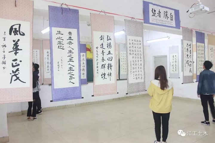本次庆五四师生书画展以宣扬五四精神为宗旨。一方面,作品内容丰富、风格各异,展示了土木学子风华正茂的青春风采,诠释他们对生活的向往;一方面,作品风格传承创新、相得益彰、笔随时代、墨见精神,体现了土木师生积极向上的创新精神、突出的艺术创作能力和良好的美术专业素养;另一方面,作品集思想性、艺术性、收藏性于一体,思想导向积极健康,充分体现五四精神在当代学生中的实际影响力,土木师生用自己的双手绘出青年对“五四”精神的诠释,吸引了土木学校师生的驻足观看,欣赏这充满艺术气息的书画展。