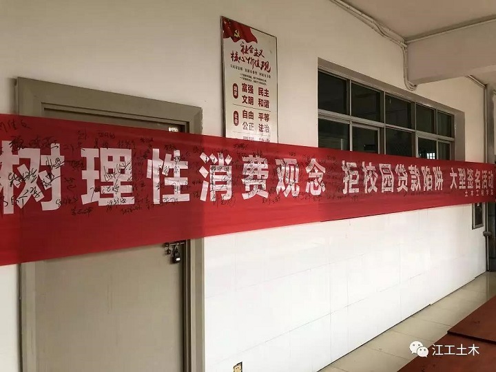 活动中同学们都表现出了积极参与的热情精神,来往的每位同学都在横幅上留下来自己的名字,表示自己乐意参与到活动当中去,经过这几次院内组织开展的关于校园贷的活动,让我们清楚的了解到校园贷潜在的危害性,并在以后的生活中远离“校园贷”。