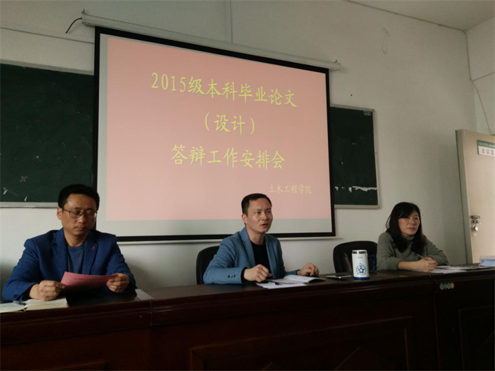 3月20日下午,土木工程学校于D栋401召开教师毕业论文答辩工作安排会,学校副院长刘一虹主持,学校全体老师参加。
